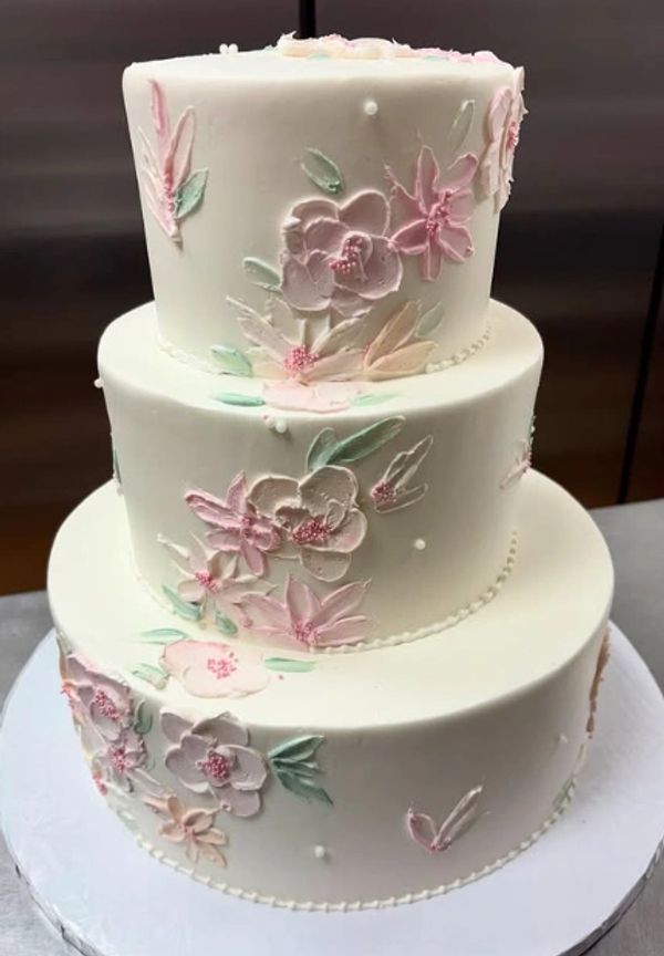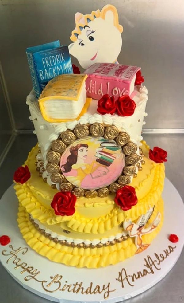 The majority of our custom cakes can be made with almost any flavor listed on our main menu! With so many options, you may think it's hard to pick! We suggest buttercream fillings and frostings for all tiered cakes or cakes that involve a color exterior. Whipped cream cakes, including cannoli cream and chocolate mousse, should only be selected on layer cakes with simpler designs.